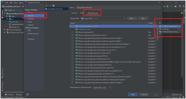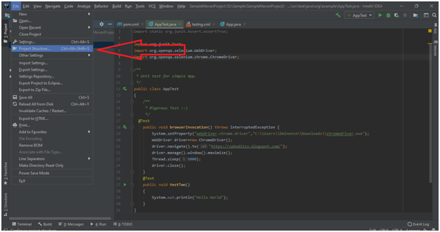 Step 5:Now go to the Project Structure menu in order to import the TestNG jar file to the project