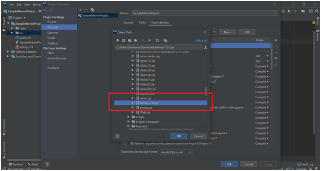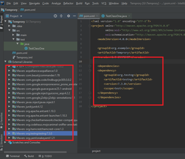Second, TestNG installation by adding dependencies in the pom.xml file