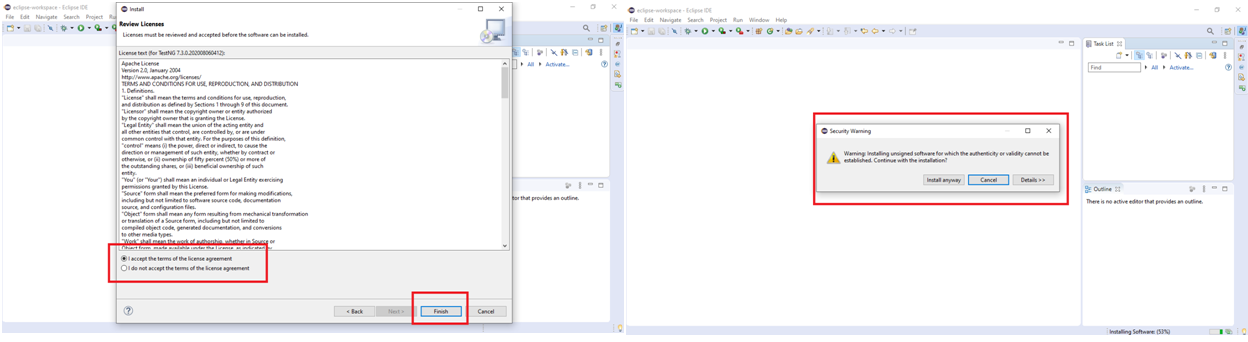 Step 7:Click the Install Anyway option in order to complete the TestNG installation