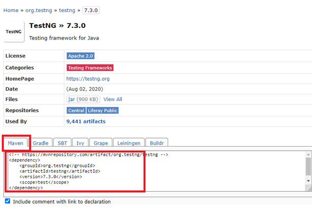 Step 1:go to the web site https://mvnrepository.com/artifact/org.testng/testng and select the latest version of TestNG