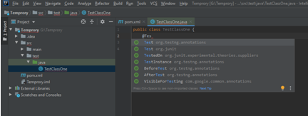 Step 6:Inside the class type “@Test”, you will see the TestNG annotation suggestions like below